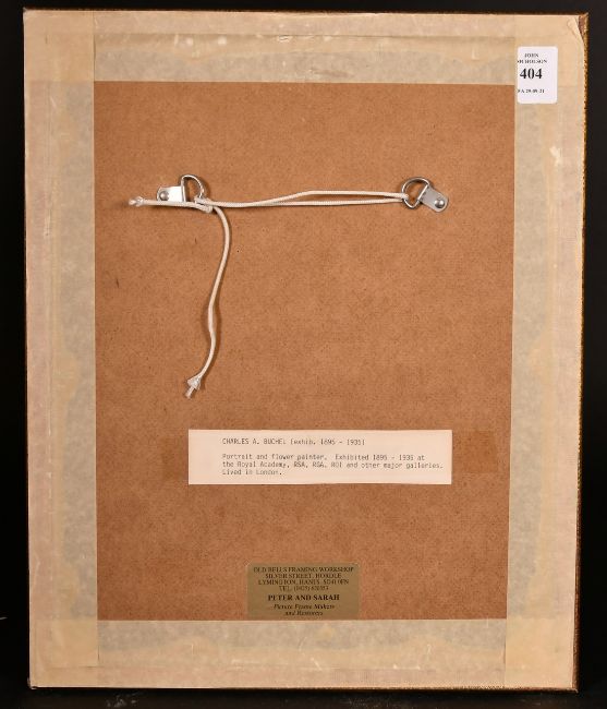 Charles A. Buchel (Exhib. 1895-1935), A still life of flowers in a blue vase, oil on board, signed, 13.75" x 11".