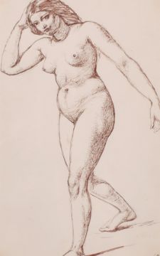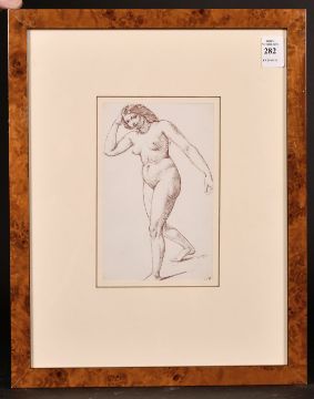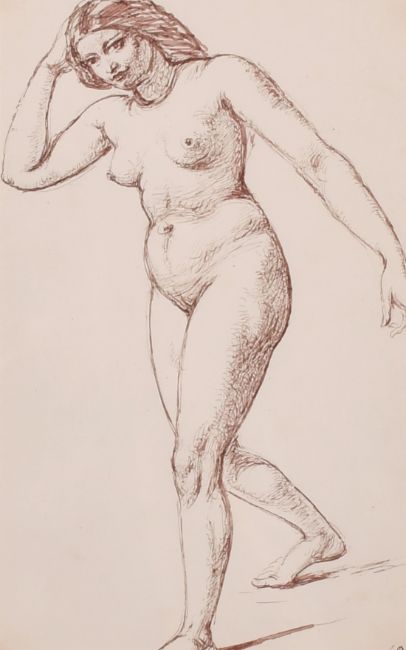 William Edward Frost (1811-1877) A female nude, pen and ink, 7" x 4.5".