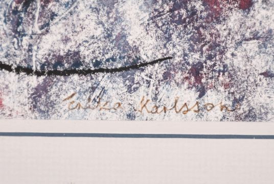 Erika Karlsson, Stylized figure, mixed media, signed 15.5" x 10.5".