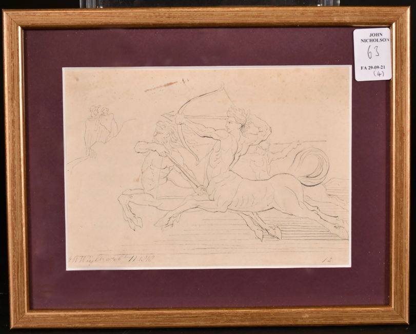 A collection of four 19th Century ink sketches, the largest 4.25" x 6.75", the smallest 3" x 3.5" (4).