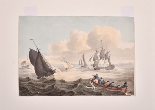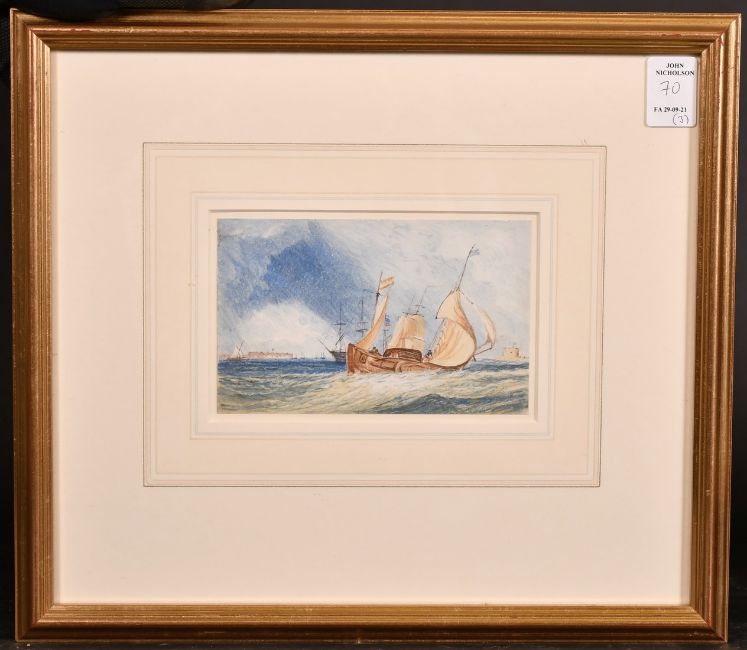 19th Century English School, A rowing boat amongst shipping, watercolour, 6" x 8", along with two unrelated watercolour sketches of similar scenes 3.5" x 5.5" & 2.75" x 4.75" (3).