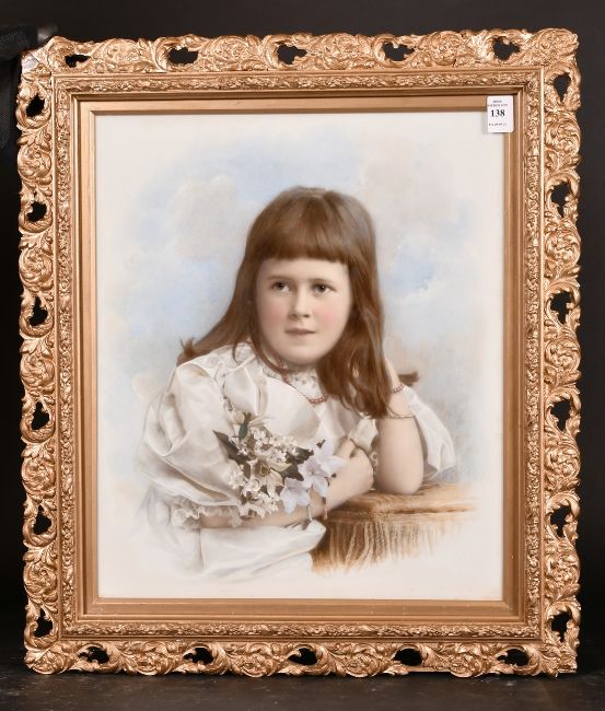 English School, Circa 1905, A hand finished photograph of a young girl holding flowers, said to be Cecilia Kemp-Welch, mixed technique, 16" x 14".