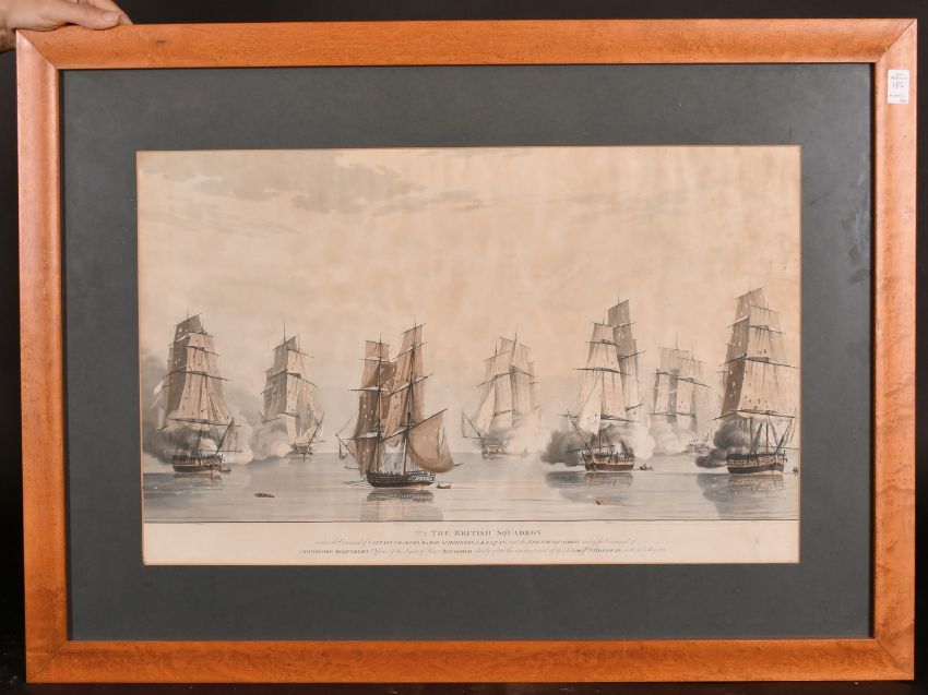 William Beechey After Thomas Whitcombe, A set of 4 hand-coloured aquatints of naval engagements off Madagascar, 15.25" x 24.75", (4).