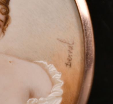 An oval portrait of a Young Lady in a gilt frame, signed, 3" x 2.5".