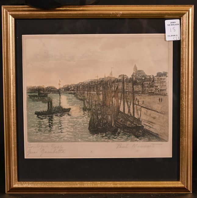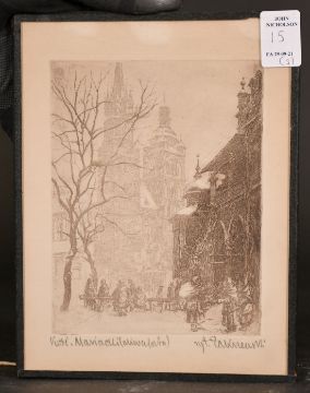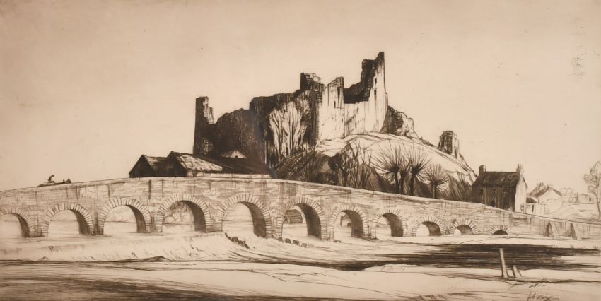 Job Nixon, 'Glanworth Castle, Ireland', etching, signed, dated, and inscribed in pencil, 9" x 16", along with two continental European views, (3).
