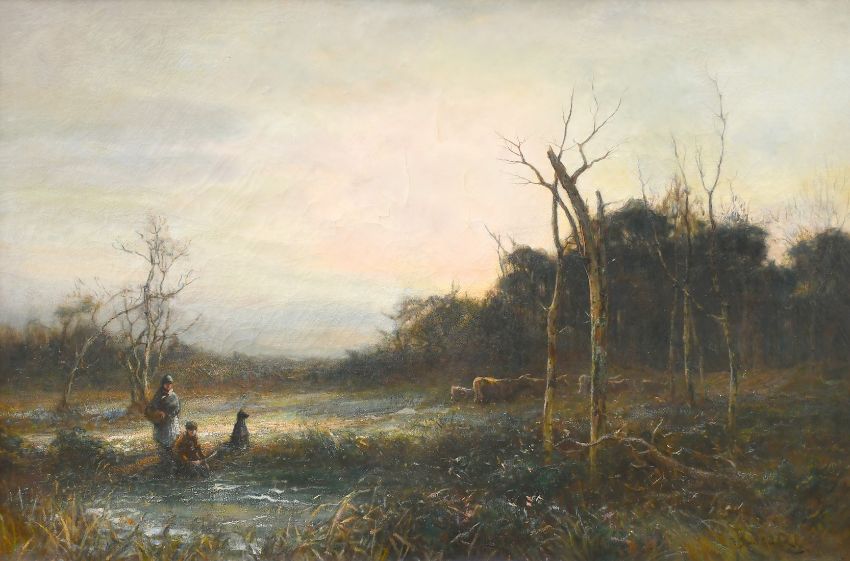 Frederick Stuart Richardson (1855-1934) British, 'A Frosty Morning', oil on canvas, signed, Exhibited RA 1899, silver medal winner at the Crystal Palace exhibition 1899, 48" x 72".