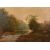 19th Century English School, A tree lined river landscape, oil on canvas, signed with initials M. H., 16" x 22".
