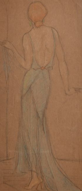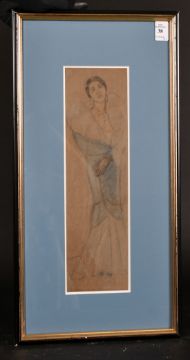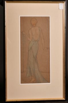 Early 20th Century, A sketch of an elegant young lady, pastel, 14" x 4", with another similar by the same hand, 13.5" x 6" (2).