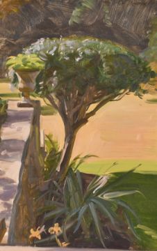 Stephen Rose (b. 1960), A study of plants in a formal garden, oil on panel, signed, 12" x 8".