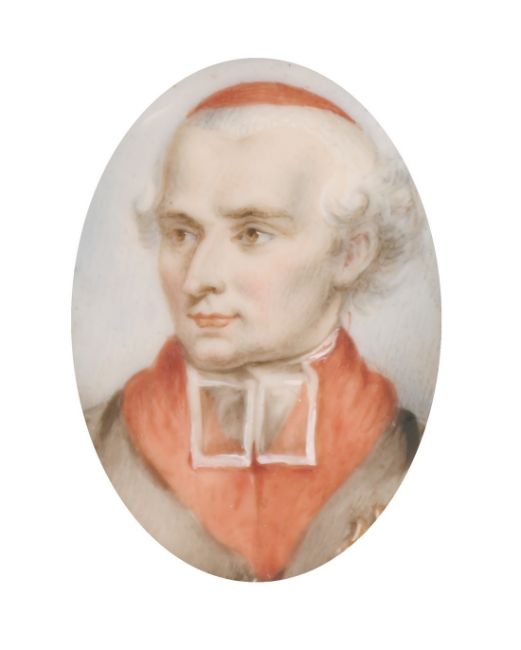 An oval portrait of a Priest in a gilt frame, 1.5" x 1.25".