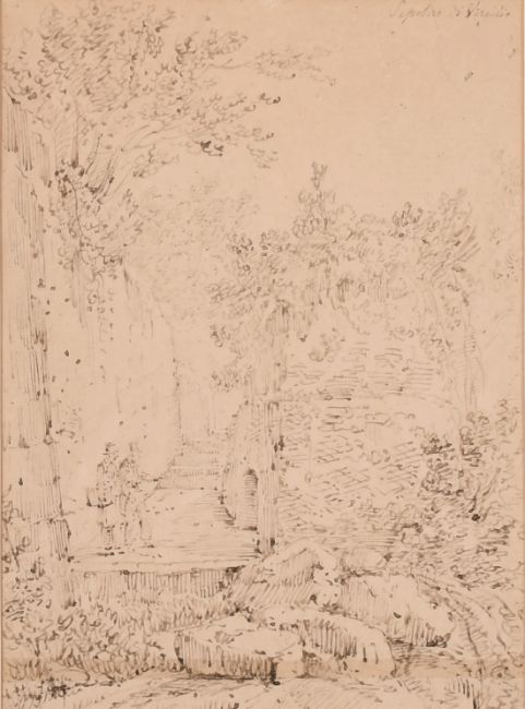 Attributed to Antonio Senape (1788-1842) Italian, 'Sepulcro di Virgilio', ink, inscribed, 8.75" x 6", Provenenance: Agnews, along with two further views by the same hand (3).