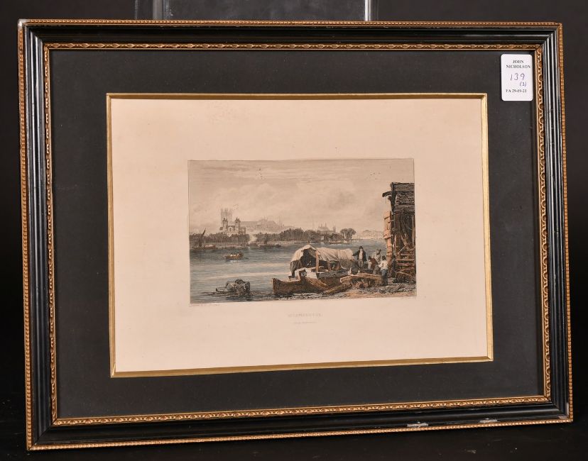 Stadler after Faringdon, circa 1795, 'London Bridge', 9" x 12.5" and two further smaller similar prints of similar subjects (3).