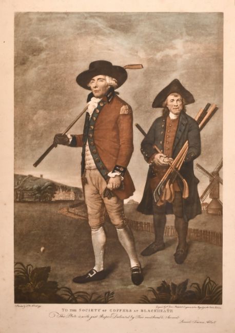 A coloured print After L. F. Abbott, (probably a later copy), 'To The Society of Coffers At Black Heath', 16.5" x 11.5".