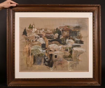 20th Century School, circa 1978, A view of rooftops in an Eastern city, watercolour, indistinctly signed and dated, 18" x 23".