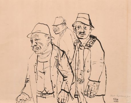 Krsto Hegedusic (1901-1975) Study of three men, pen and ink, signed and dated 1933, 17" x 21.5".