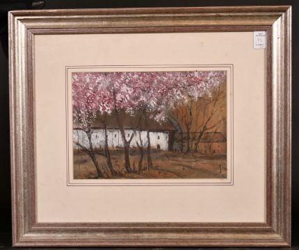 20th Century School, A tree lined river landscape, oil on board, 18" x 18", along with a scene of farm buildings and blossom, signed 'Sylva' 8" x 11", and an urban landscape 10.5" x 13.25", (3).
