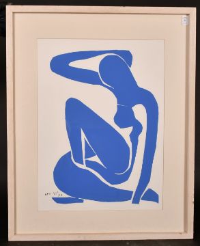 After Matisse, a lithograph of 'Nu Bleu I', 23" x 17".