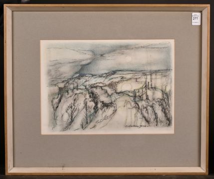 Adrian Hill (1895-1977) 'Encroaching Night', charcoal and pastel, signed, 9.5" x 13".