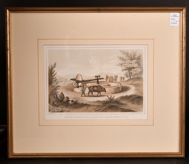 A group of eight framed antique prints of Chinese subjects, all approximately 7" x 9", (8).