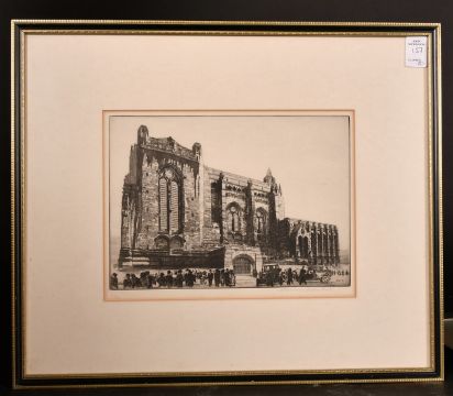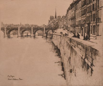 Eugene Bejot (1867-1931) French, Scene in Paris, etching, signed in pencil, 7" x 8" and a small collection of etchings and a print, various sizes, (5).