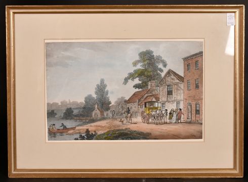 19th Century caricature, 'A Publican and Sinner', 9.75" x 16.25" and a hand-coloured etching of a carriage outside an inn, 14" x 14.5" 10" x 14.5", (2).
