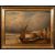 19th Century, Shore scene with a beached fishing boat and figures, oil on board, 12" x 16".