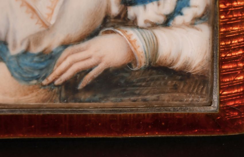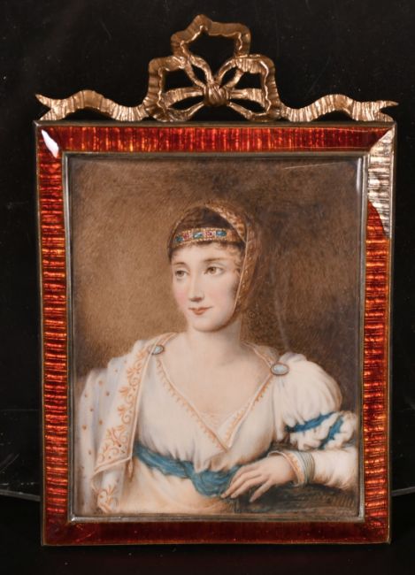 A very good miniature of a Young Lady in an enamel frame, 3.25" x 2.75".
