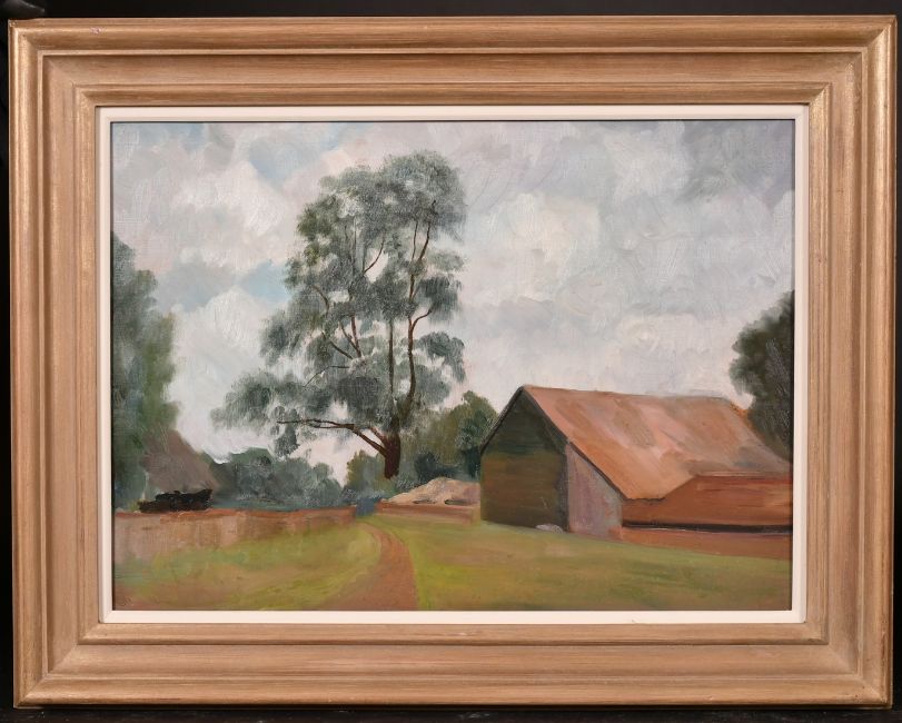 Charles Stokoe, A scene of a farm building in open countryside, oil on panel, 11" x 15".