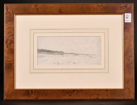 Johan Barthold Jongkind (1819-1891) Dutch, A sketch of an extensive landscape, pencil, signed and dated 71, 4" x 8.5".