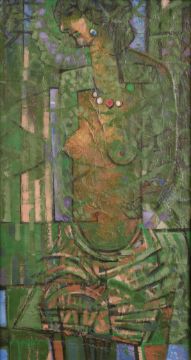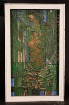 Roger Smith (1932-2004) British, A semi abstract female nude figure, mixed media, 23" x 13".