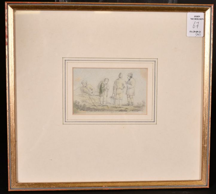 J. Ward, late 18th Century, 'Bird Catcher', ink, 4.25" x 2.75", along with three 19th century sketches of similar size (4).