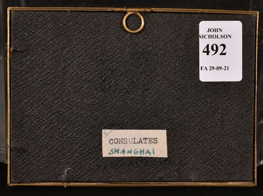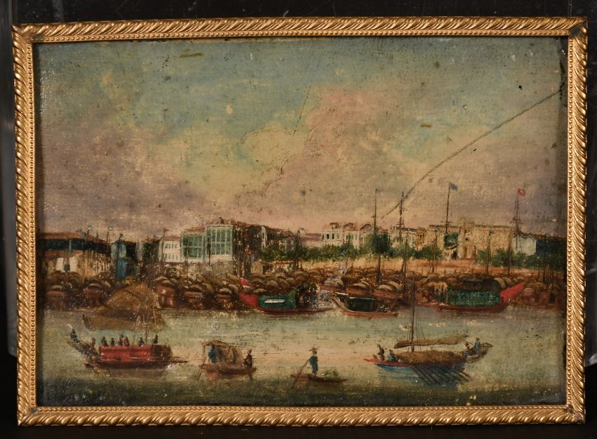 Chinese School, Circa 1850, A view of the consulates in Shanghai, oil, 3.25" x 4.75".