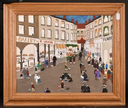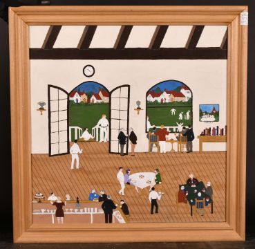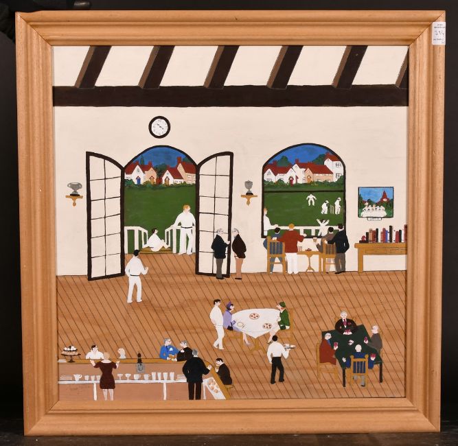Tony Newton, The Cricket Match, The Wedding, Saloon Bar and Saturday Shopping, oils on canvas, all signed, various sizes, 15" x 14", 19.5" x 19.75". (4)