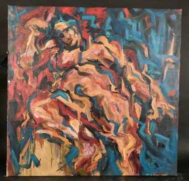 20th/21st Century, A study of a reclining male nude, oil on canvas, signed indistinctly on a canvas verso, 47" x 48".