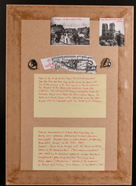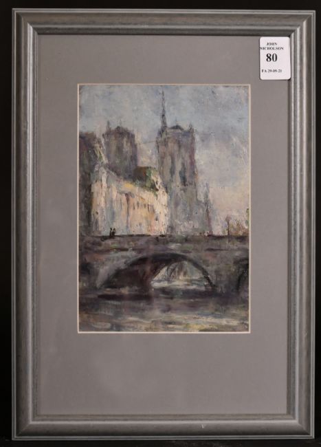 Early 20th Century French Impressionist School, Figures on the Pont Neuf with Notre Dame beyond, oil on board, 7" x 5".
