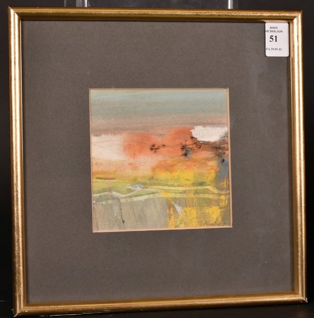 Charles Duranty, 'Sunset over an Essex Field', watercolour, 5" x 5", provenance: Mansard Art Gallery.