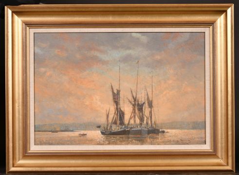 Anthony Fleming (b.1936) 'Morning Light' Thames Barges, oil on canvas, signed 12" x 18".