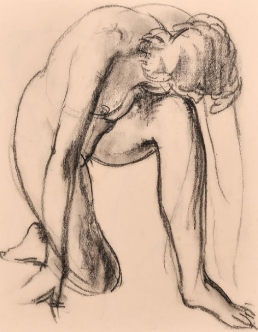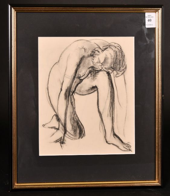 Attributed to William Dennis Dring, A study of a kneeling nude figure, charcoal, 9.5" x 8".