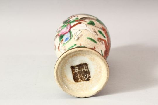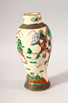 A SMALL CHINESE CRACKLE WARE VASE, painted with warriors, 21.5cm high.