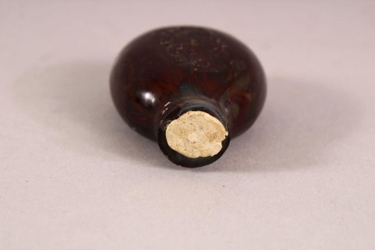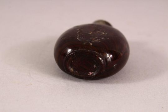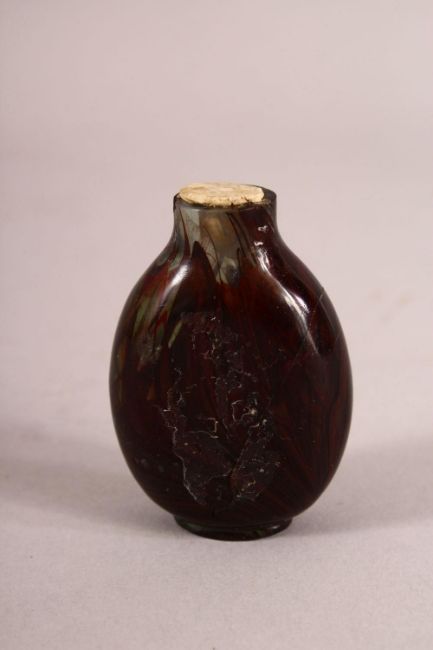 A CHINESE HARDSTONE / GLASS SNUFF BOTTLE - with varied colour decoration, 6cm