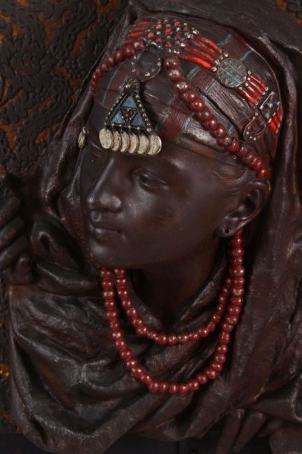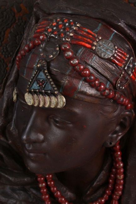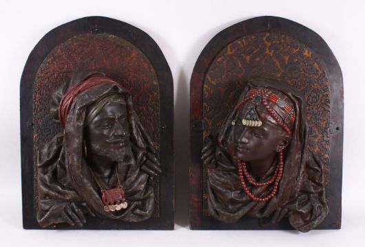 A PAIR OF EGYPTIAN BRONZE RELIEF FIGURAL BUSTS, depicting a prince & princess,each mounted to a wooden plaque, 56cm x 40cm.