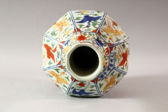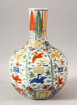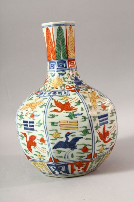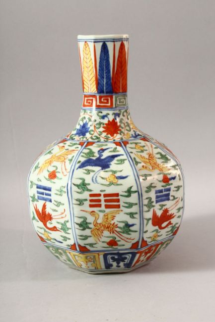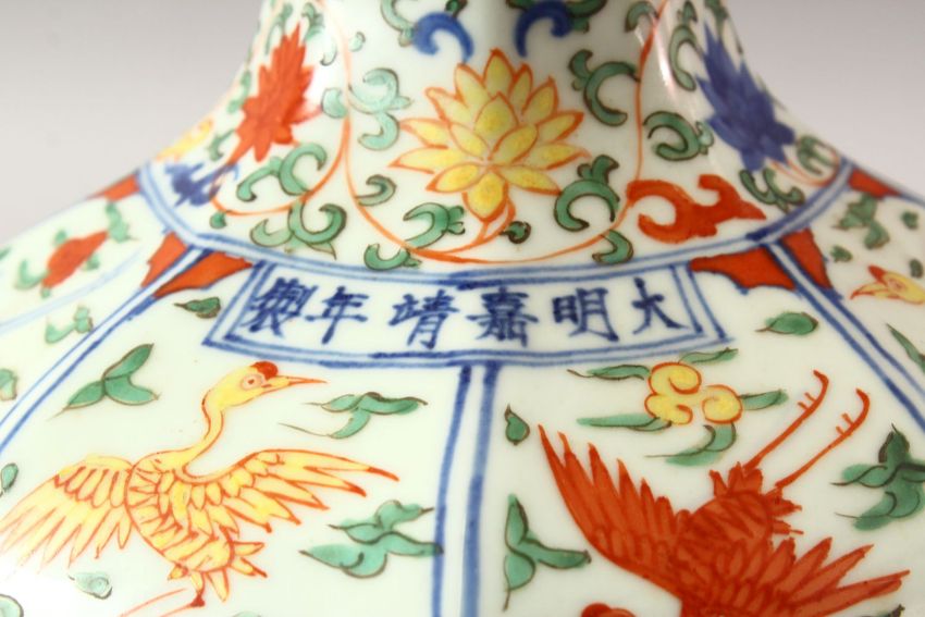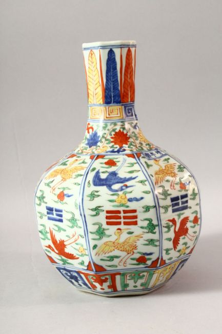 A CHINESE MING STYLE WUCAI VASE, decorated with cranes and lotus, 30cm high.