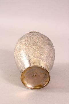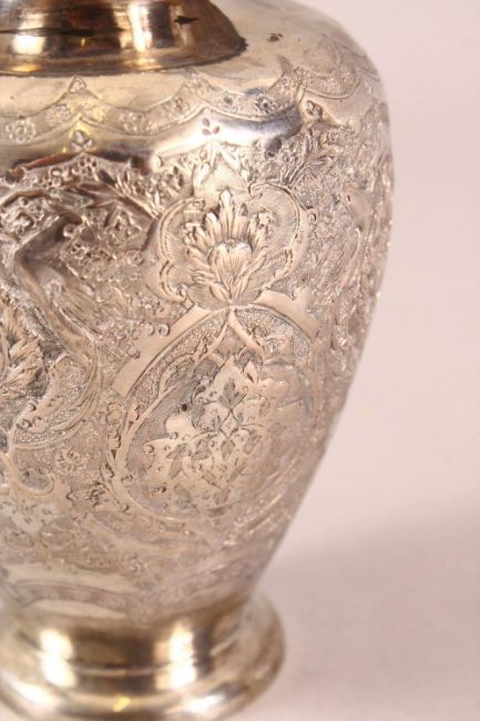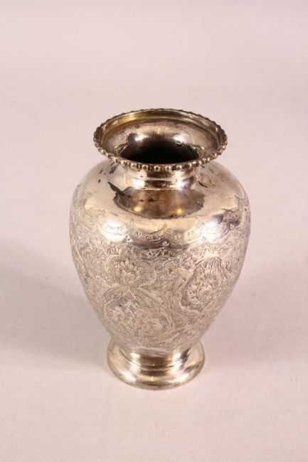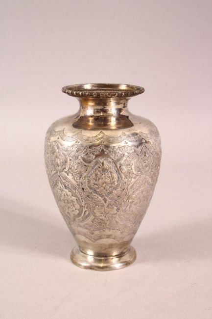 A 19TH CENTURY SMALL PERSIAN ENGRAVED VASE - the body of the vase with carved floral motif decoration - the base with a mark - 12cm high