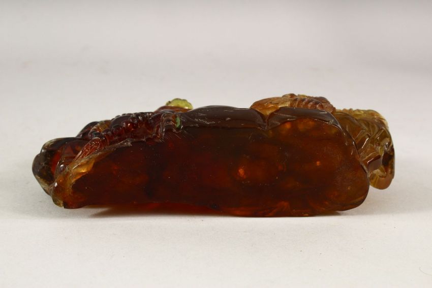 AN AMBER STYLE GROUP OF LAUGHING BUDDHA, surrounded by children, 20cm long.