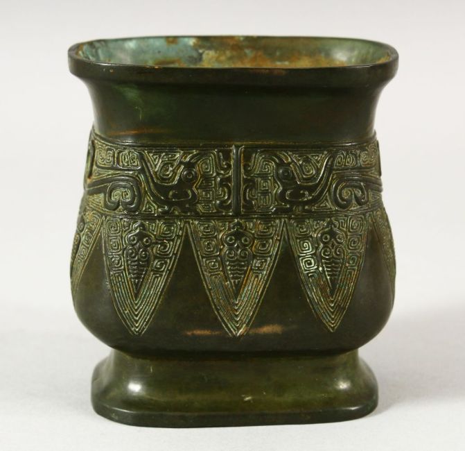 A CHINESE ARCHAIC STYLE BRONZE VESSEL / VASE - 9CM