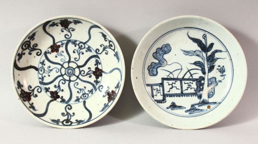 TWO CHINESE BLUE AND WHITE CARGO PLATES, both approx. 20.5cm.