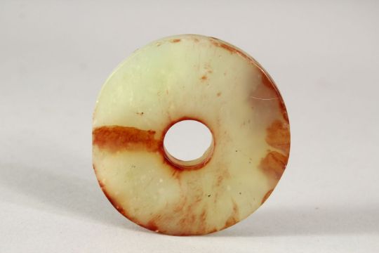 A CHINESE CARVED JADE BI / PENDANT - the pendant carved in the form of Bi, carved with chilong decoration, 6cm