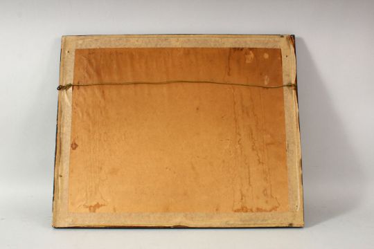 A JAPANESE PRINT, depicting flowers and rocks, 13cm x 26cm.