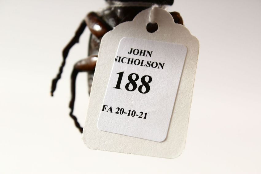 A JAPANESE BRONZE BEETLE, 10cm long.