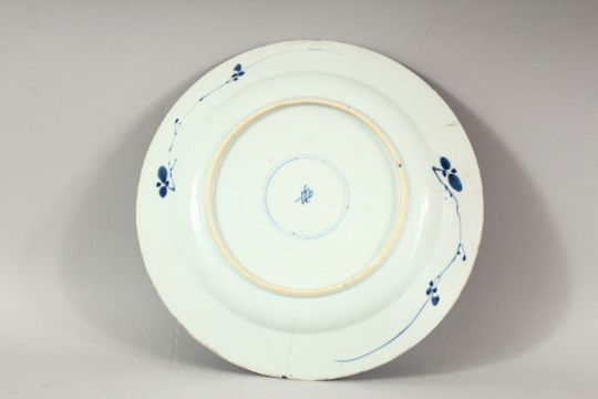 A CHINESE BLUE AND WHITE PORCELAIN DISH, decorated with flowers, 26.5cm diameter.